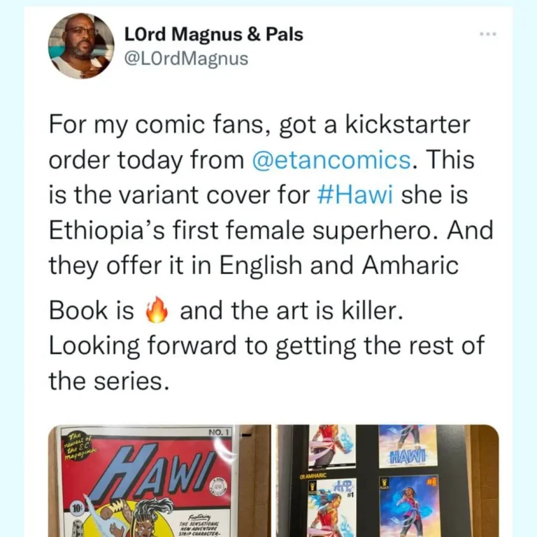 Hawi is an award-nominated African mythology graphic novel inspired by Ethiopian history and the legendary warrior queen, Yodit Gudit. After the heartbreaking loss of her father, Emnet and her mom leave Ethiopia. But before long, a masked mercenary lures them back. He kidnaps her mother, dragging her to a dangerous & magical realm filled with mythical beasts, powerful shamans, and ruthless sovereigns. Stranded in the Axumite Empire, Emnet must figure out how to save her mom and go home, all while unraveling family secrets and facing a sinister force that threatens both worlds. Hawi was shortlisted for Best Graphic Novel award by the prestigious African Speculative Fiction Society, ranking in the same category as Marvel’s Black Panther. If you like stories like Black Panther, Storm or Blade, you will love Hawi. It’s made by an all-African creative team and available in limited-edition hardcover with over 120 pages of stunning art & storytelling! It has raised over $35,000 by more than 740 Backers. It’s available in English and Amharic. Hawi ships worldwide. It’s one of the most celebrated African mythology graphic novels for ages middle grade, teens and adults.