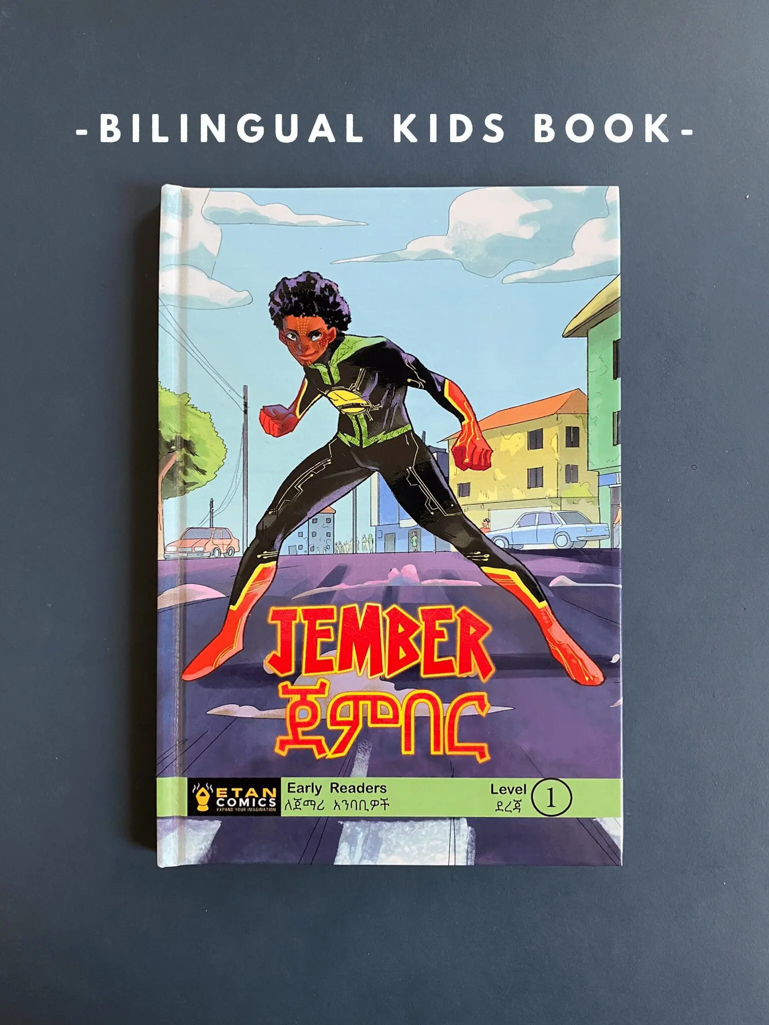 JEMBER early readers book is a hardcover bilingual book (English &ย Amharicย on the same page) designed to help emerging readers build theirย reading confidence, learn African languages & expand their imagination. Based on the award nominated graphic novel of the first Ethiopian Superhero, JEMBER, and as seen on BBC, OkayAfrica & more!